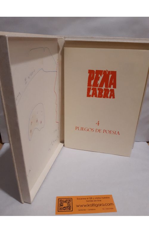 Incluye caja contenedora en tela rústica editorial serigrafiada por Gloria Torner. Este ejemplar es uno de los 10 que se realizaron como prueba de artista, con dedicatoria y dibujo manuscrito por la artista en la cara interna de la caja. Buen estado de conservación, algunas manchas de óxido en la carpeta y en la hoja de presentación. 1200 gramos.