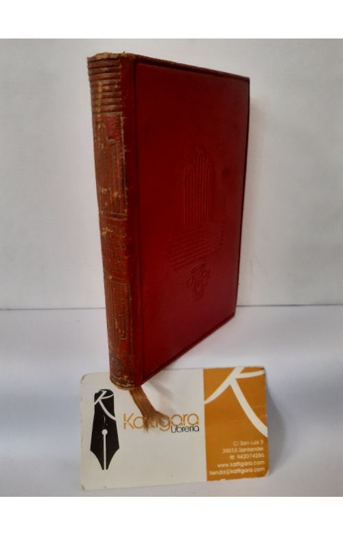 Buen estado de conservación, motas de óxido en los cortes, roces en el lomo. Corte superior tintado, cinta de registro, encuadernación en piel. 8,5 x 12 cm.