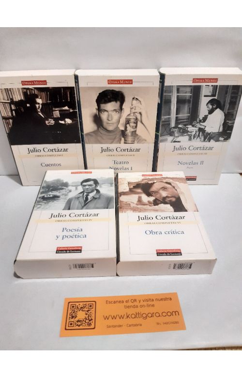 Incluye 5 volúmenes con cajas de cartulina. I cuentos. II Teatro y Novelas. III Novelas. IV Poesía y Poética. VI Obra crítica. (No incluye los volúmenes de Prosa varia, Cartas ni Entrevistas). Buen estado de conservación, tenues puntos de óxido en la cara superior de algunas de las cajas. 4200 gramos.