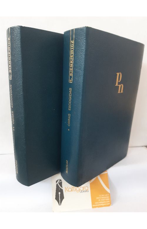 Encuadernación en piel. Buen estado de conservación, algunas motas de óxido en los cortes. Tomo I: A sangre y fuego. El diluvio. Un héroe polaco. Tomo II: ¿Quo vadis? EL criado viejo. Hania. A través de las praderas. Bartek el triunfador. El torrero. Yanko el músico. Bocetos al carbón. El organista. La bienvenida. En el Olimpo. Sueño profético. Una comedia de errores. La tercera mujer.